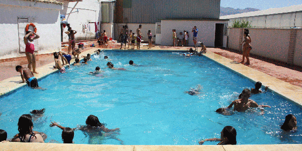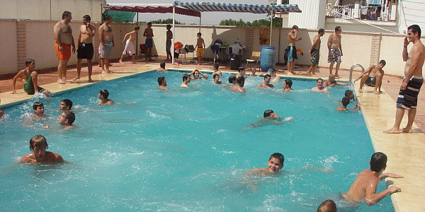 Piscina de 15 por 8 metros y profundidad de 1,40m hasta 2,40m.